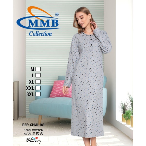 Chemise de nuit manche LONGUES fond couleur étoiles pour demi-saison